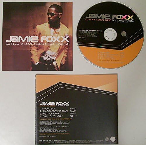 Jamie Foxx – “DJ Play A Love Song” (featuring Twista) CD Single · 4-Track Promo (2006) · J Records [Audio CD] Catalog No: 82876-78670 TRACKLIST: 1. Radio Edit (3:59) 2. Radio Edit (No Rap) (3:47) 3. Instrumental (3:59) 4. Call Out Hook (0:10)