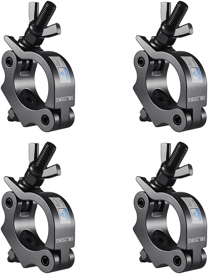 GSA Stage Light Clamp Hook with Anti-Injury Clip – Aluminum Alloy Truss Clamp for DJ Lights, Par Spotlights, Moving Head Lights, Pole Mounts, and Stage Lighting Kits (4 Pack)