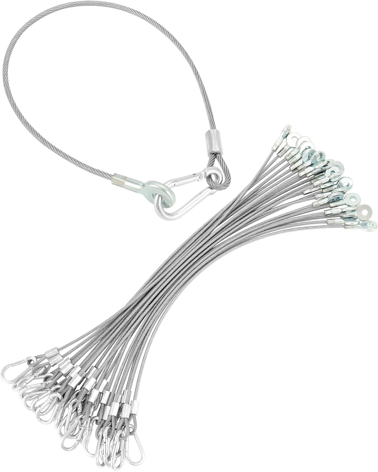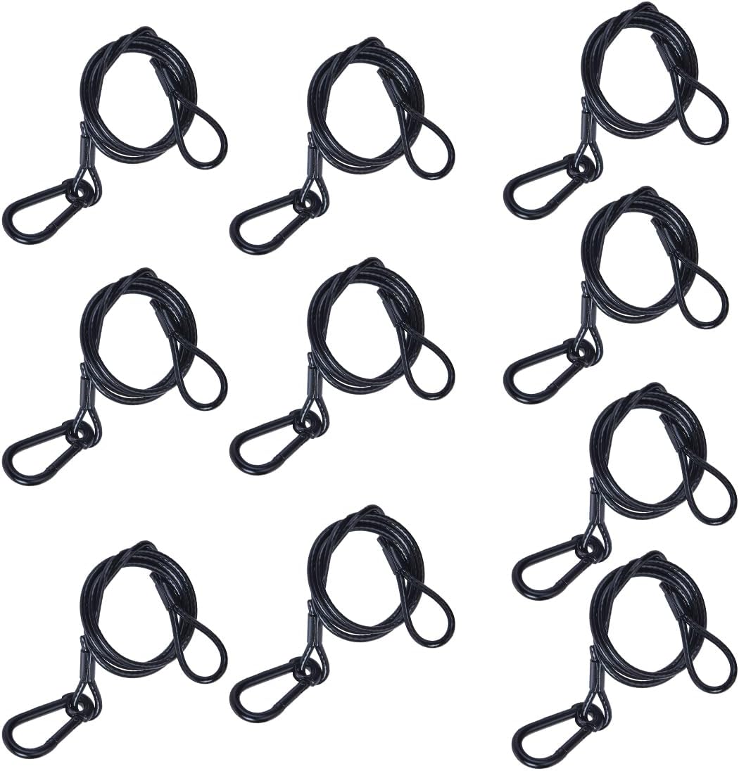 LAICCUM 20-Pack 2ft 1/8" Stage Light Safety Cables with Carabiner Lock, Stainless Steel Wire Ropes, 120lb Load Capacity for DJ Light Equipment