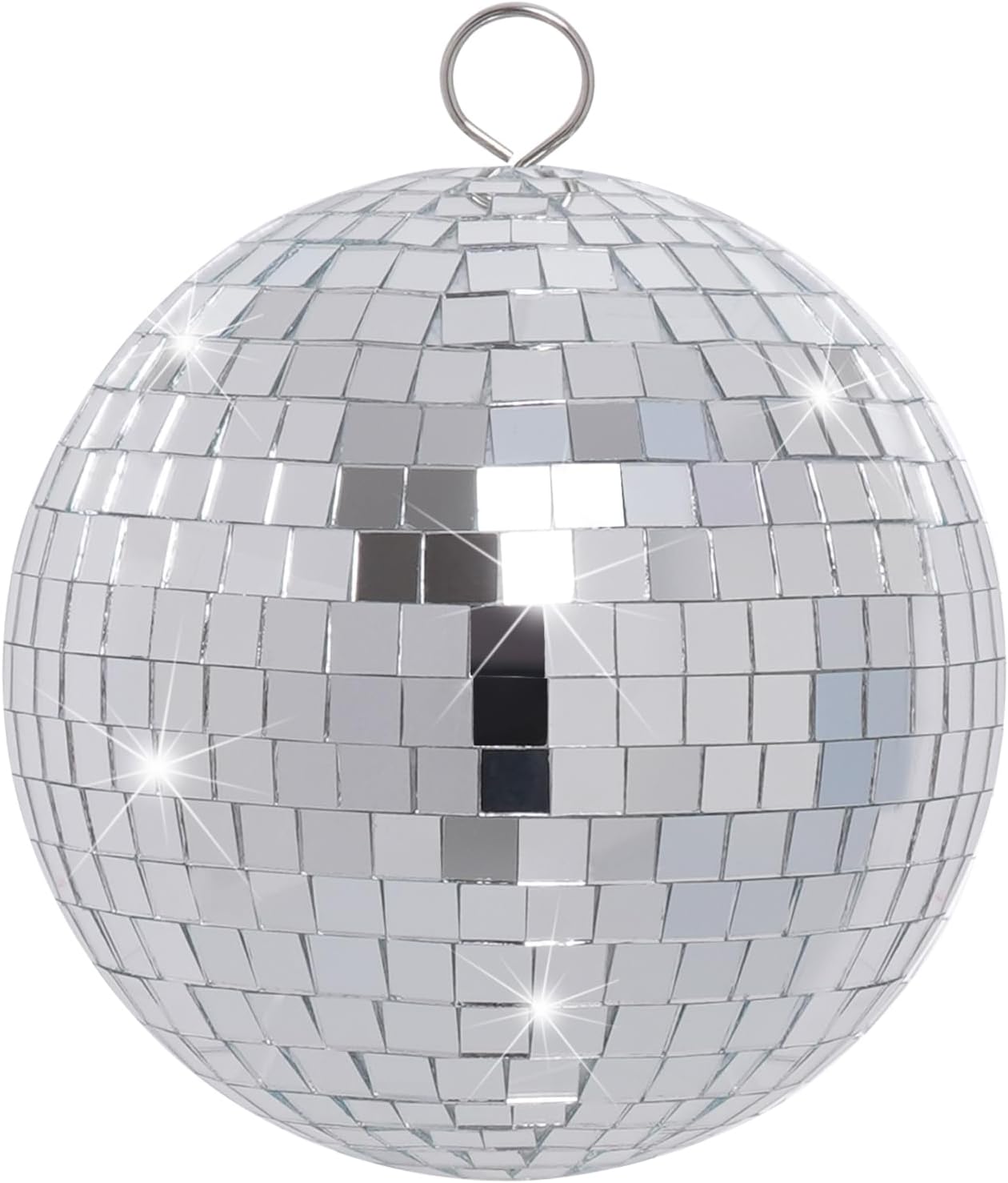 Boshen 10" Silver Disco Mirror Ball with Hanging Ring – Perfect for Parties, Xmas, DJ, and Stage Lighting (1 Pack)