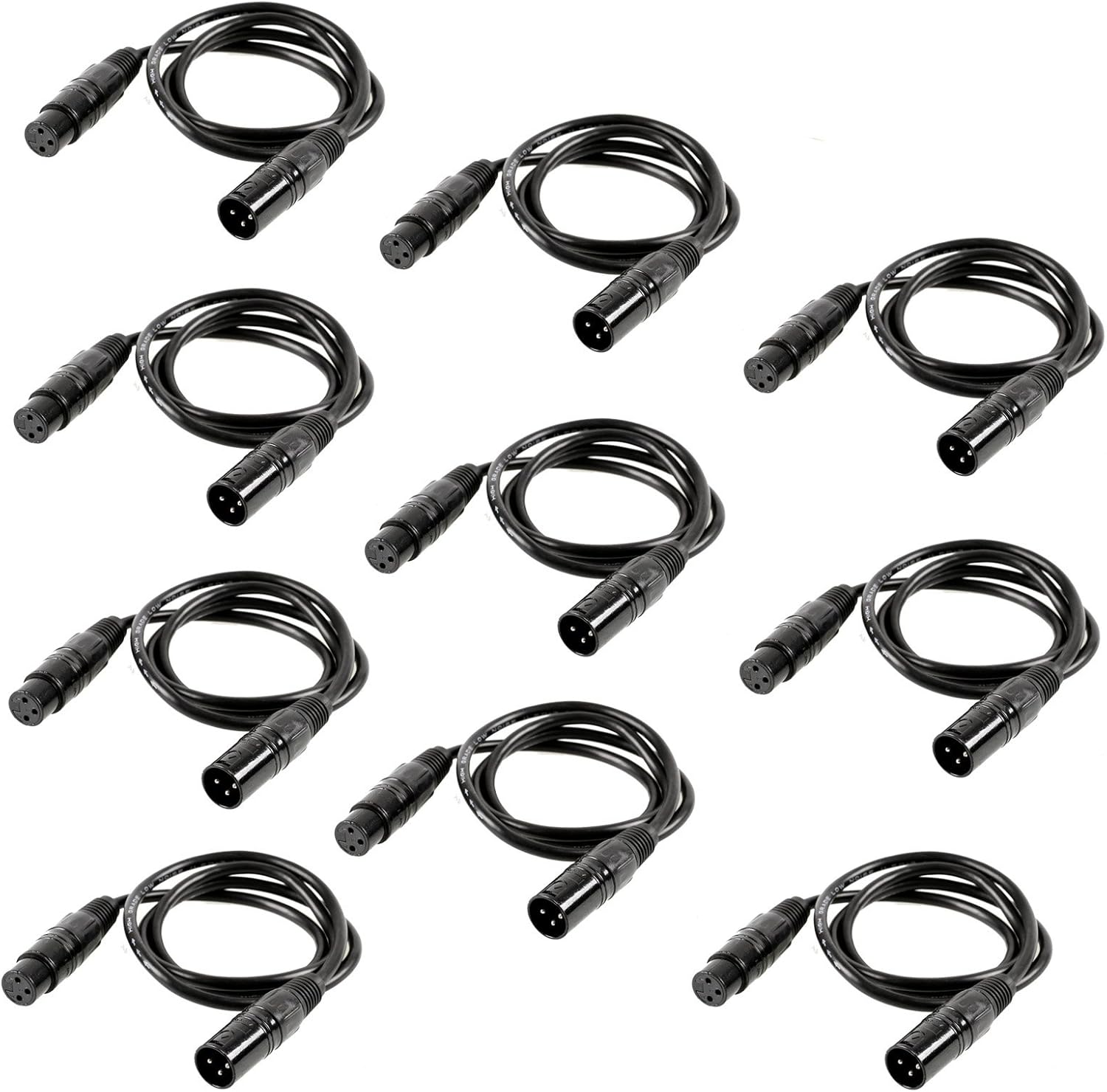 Czgor 10-Pack 6.5ft DMX Cables, Flexible 3-Pin XLR Male to Female Wires for Stage Lighting, Par Lights, and Moving Head Spotlights